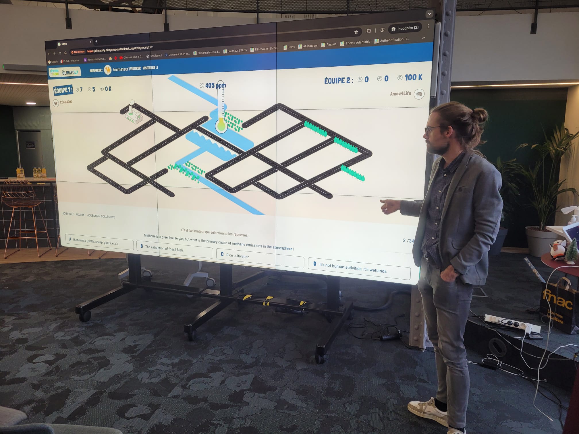 2 équipes s’affrontent pour créer la ville la plus durable mais attention à la jauge de CO2 en cas de mauvaises réponses !